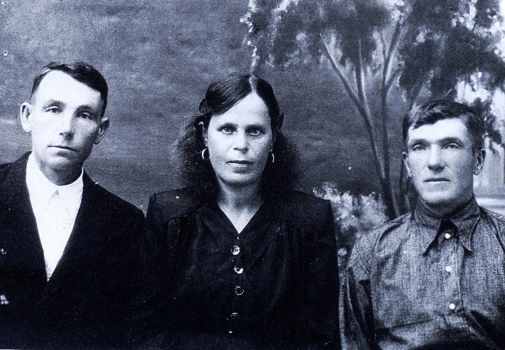 ![]() Дочь Захара Селиверстовича от первого брака – Марфа Захаровна с мужем Троян Павлом Даниловичем (слева) с односельчанином Гавриловым Прохором Федоровичем. |